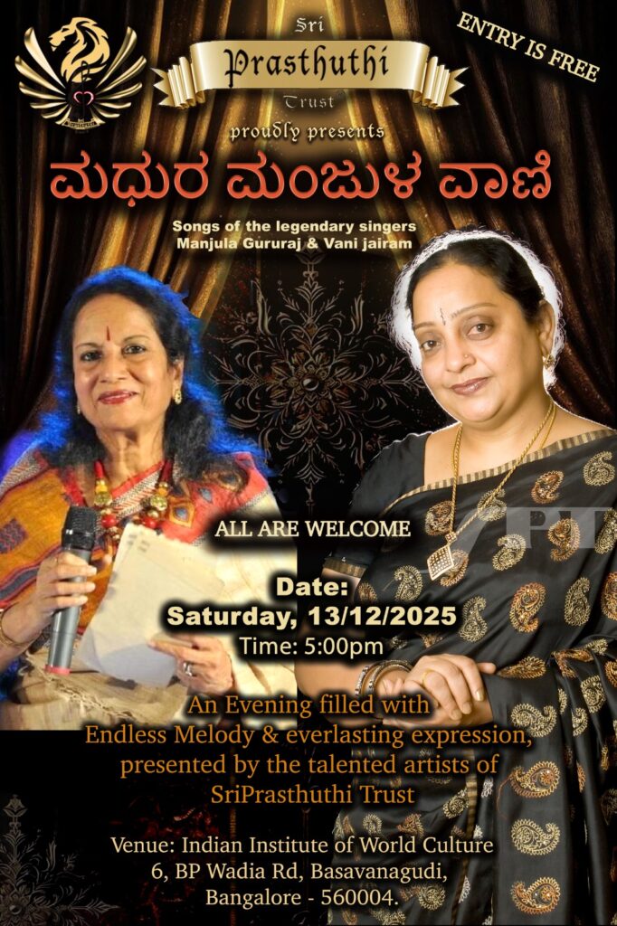 Duets with Vani Jairam and Manjula Gururaj performed by our artists. An evening filled with melodious duets originally sung with either Vani Jairam or Manjula Gururaj.